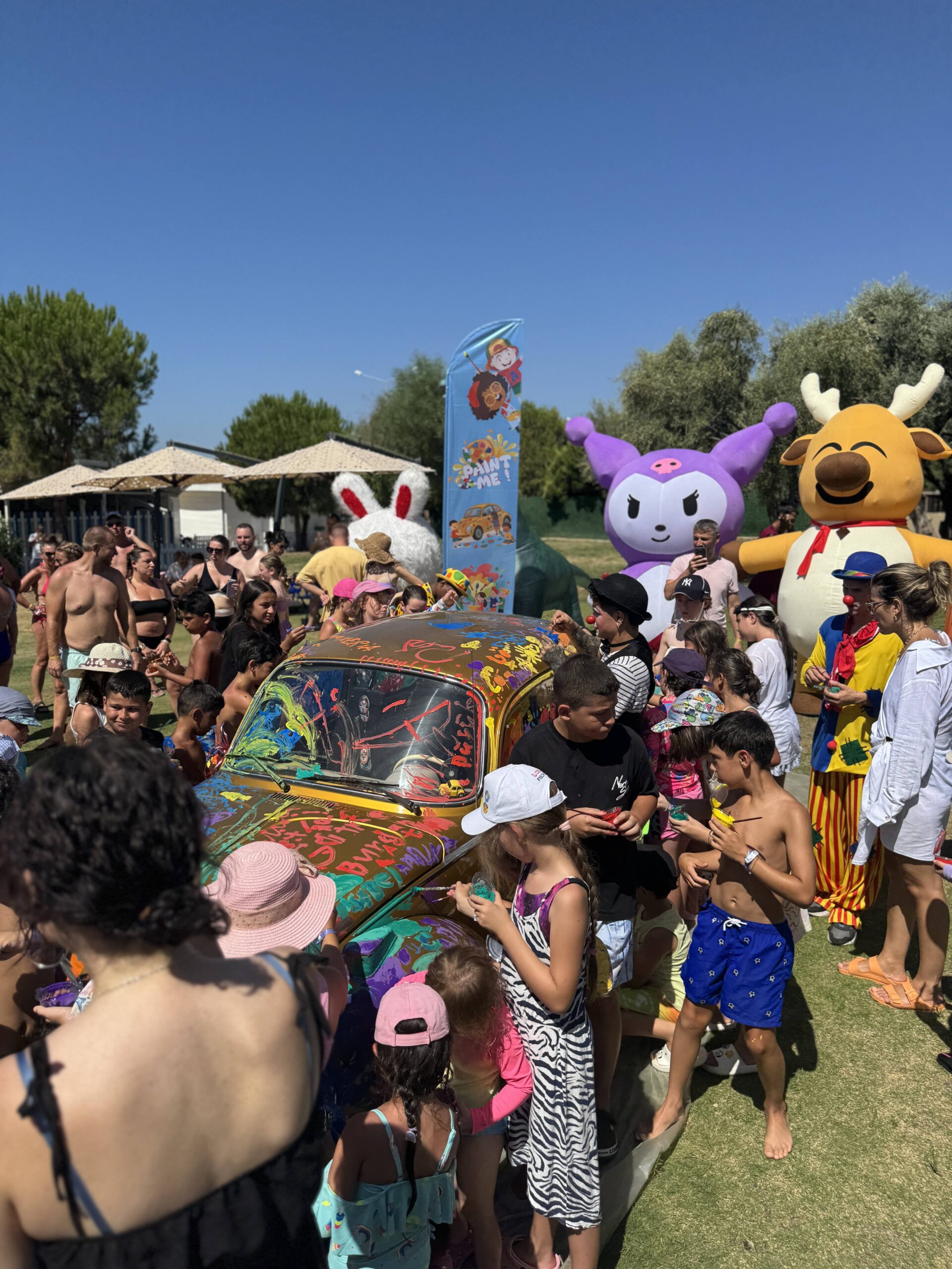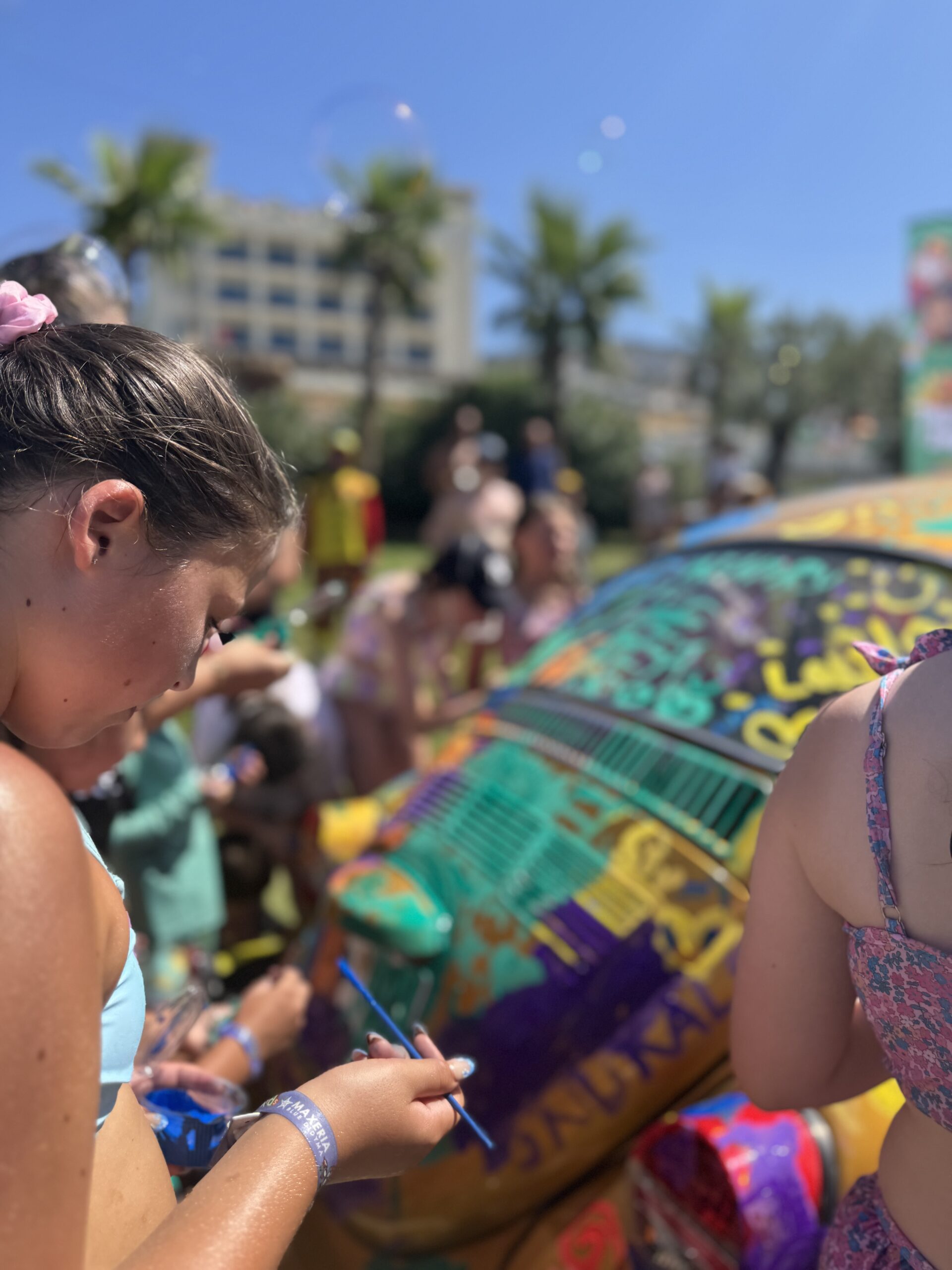 The event begins with children happily painting a bright yellow Volkswagen Beetle, freely expressing themselves through colors and creativity. Following this, they step into a magical world of bubbles with a fun and interactive Bubble Workshop.